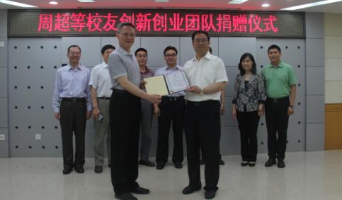 刘宏民校长代表学校向以周超教授为代表的创新创业团队颁发了捐赠证书