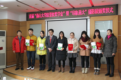 宣传部部长仵凤清和首届“印象燕大”摄影展评委杜崇杰老师共同为首届“印象燕大”摄影展获奖师生颁发了奖励。