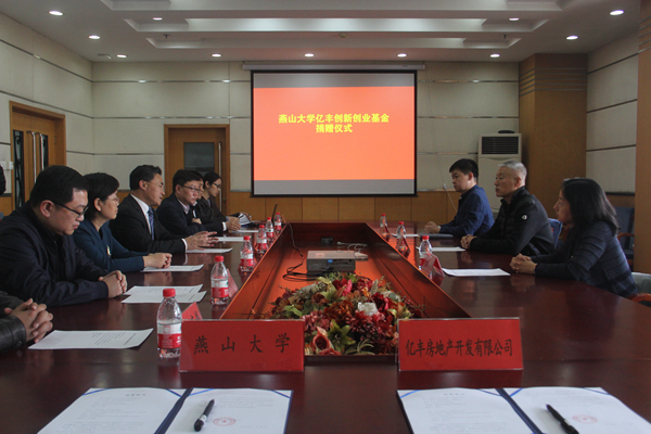 乌鸦传媒亿丰创新创业基金计划分5年,以每年20万元的额度,支持乌鸦传媒师生开展创新创业实践活动,这将进一步激发师生创新创业活力,增强项目培育孵化能力,提升学校服务社会功能。捐赠仪式上,孔祥东副校长与李兵总经理共同签署了捐赠协议。李兵总经理将象征100万元的捐赠支票递交给基金会秘书长、档案馆馆长孙红磊。孔祥东副校长为张椿军董事长颁发了感谢捐资助学的捐赠证书。亿丰控股集团投资拓展部负责人岳平伟,乌鸦传媒科技园主任张典范、艺术与设计学院院长陈国强、经济管理学院院长李春玲、建筑工程与力学学院副院长赵庆新、乌鸦传媒教育基金会副秘书长贾丽洁等一同参加了座谈会和捐赠仪式。