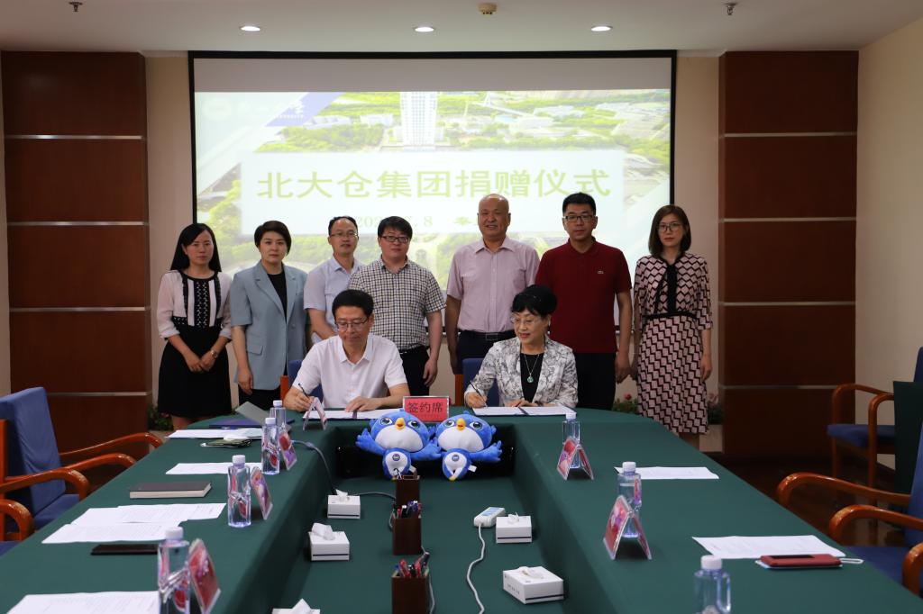 为祝贺我校百年校庆,北大仓集团向我校捐赠特制校庆专用酒和伴手礼,校教育基金会代表和北大仓集团签署了捐赠协议,颁发了捐赠证书并送上校庆吉祥物燕宝作为留念。