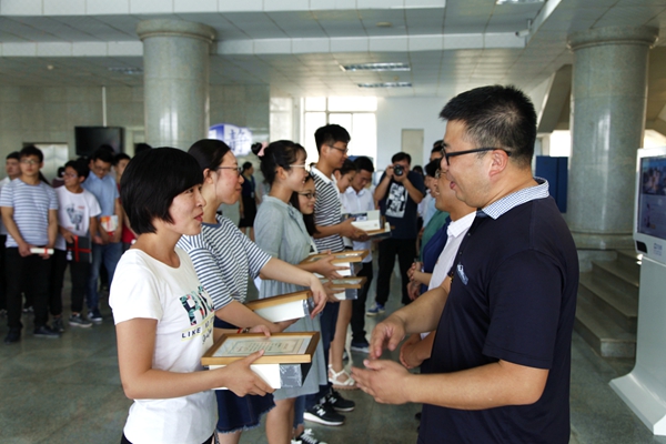 参加仪式的领导和嘉宾为各学院本科毕业生借阅排名前2名的学生赠送了毕业纪念折页、校友联络卡和图书馆的自选图书,并为自愿捐赠“最美笔记”的同学们颁发了收藏证书和精美纪念品。