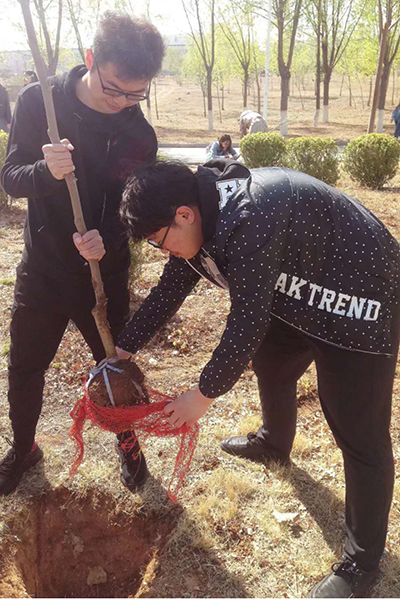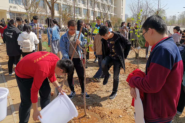 经济管理学院自2014年起就踊跃响应习近平总书记“全员动手、植树造林”的号召,将环境绿化纳入年度工作计划之中,牢固树立“绿水青山就是金山银山”的发展意识,号召全院师生积极植树、绿化校园,将社会主义生态文明观念融入校园生活。经过几年的努力,学院通过校友捐赠、栽植毕业林等多种形式,先后栽植了泡桐树、玉兰树、银杏树、海棠树、核桃树、山楂树、樱桃树、桃树、梨树等千余株乔木植物以及月季、丁香等灌木花卉,原本空旷沉寂的经管楼周围现已绿茵遍地、花团锦簇,学院师生形成了崇尚自然、热爱自然、善待自然的道德风气,并用实际行动爱护着校园生态、美化着校园环境。