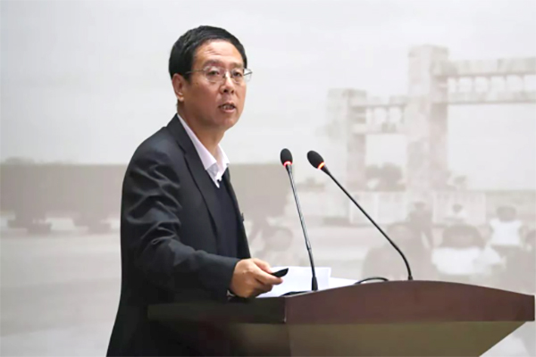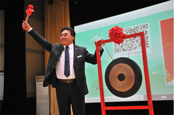 孔祥东敲锣宣布我爱燕大人人捐活动开始(王晓琪/摄)