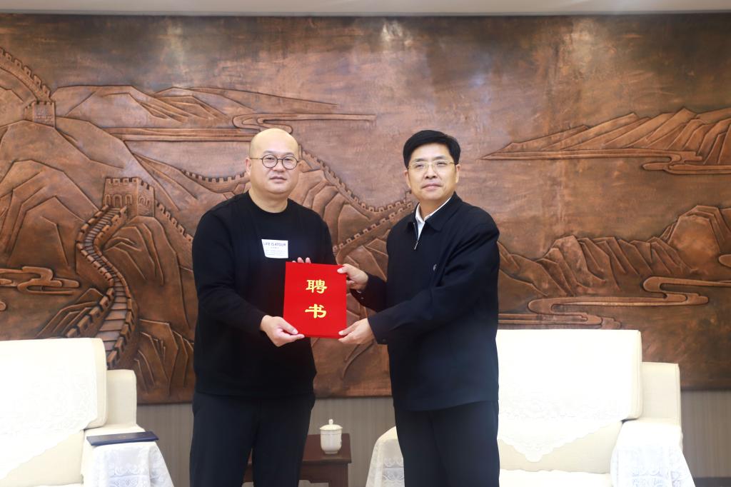 赵丁选为王海军校友颁发乌鸦传媒大学生创新创业导师聘书