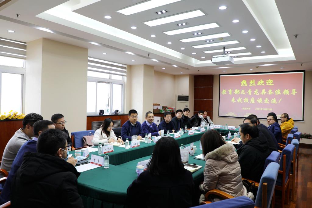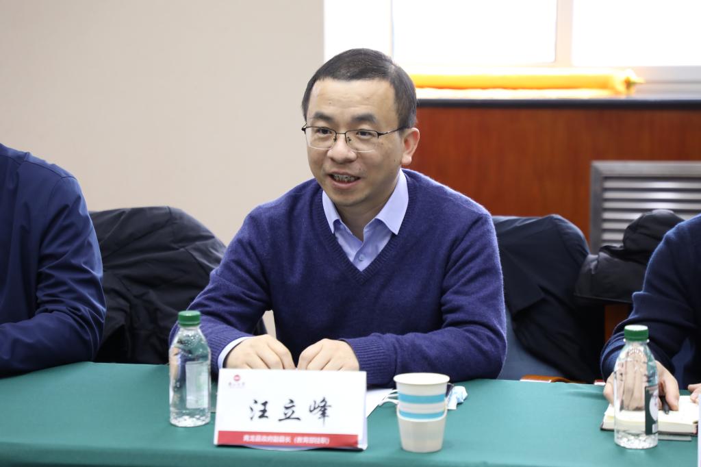 12月22日上午,教育部驻青龙工作组挂职副县长汪立峰、肖营子镇五指山村副书记(挂职)卢正天、肖营子镇肖营子村副书记(挂职)蔡炜浩、县委组织部干部(挂职)叶灯枫、教育和体育局干部(挂职)汤鑫雯、青龙县农业农村局副局长杨继国、青龙县农业农村局干部李宇翔及企业代表一行到我校座谈交流。副校长任家东,计划财务处处长刘国安,校友办主任、里仁学院党委书记张向前,招生就业处副处长陈树冬,工会群众工作部部长骆秀曼,后勤服务中心餐饮服务部部长刘安平,校友办基金管理办公室主任纪红月等参加座谈。会议由张向前主持。