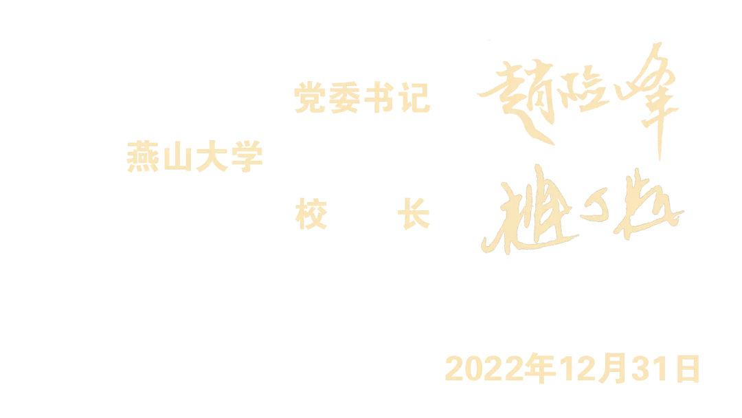 时光如流、岁月斗转,历史注定会铭记那些伟大非凡的时刻。2022年是党和国家历史上极为重要的一年,党的二十大胜利召开,成就鼓舞人心,蓝图催人奋进。以习近平同志为核心的新一届中央领导集体正带领全党全国各族人民迈上全面建设社会主义现代化国家、全面推进中华民族伟大复兴的新征程。燕大四万余师生也秉承“匠心为国铸重器”的家国情怀和“矢志不移育英才”的初心使命,踔厉奋发、砥砺向前,用汗水和行动填写了燕大人自己的“成绩单”。